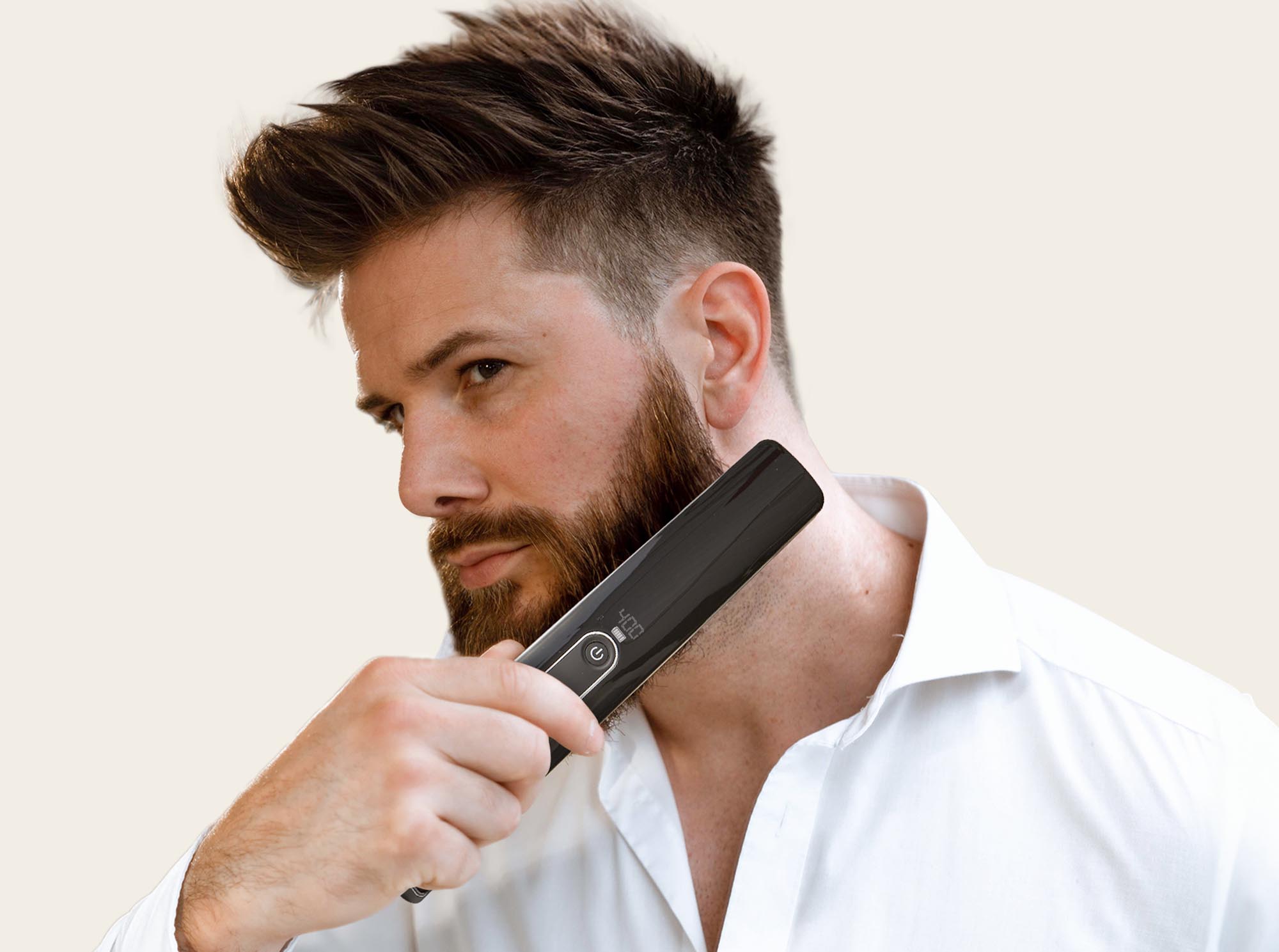 Straighten and sculpt your beard using the Go 2. The controlled heat uses tension & ionic conditioning technology to train hairs to contour along a round face to create an angular facial appearance.